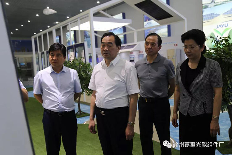 嘉寓光能作為沛縣光伏產(chǎn)業(yè)鏈中的重要一環(huán),政府部門一直給予高度的重視與支持。在展廳內(nèi)嘉寓光能總經(jīng)理陳志榮向周鐵根書記一行,介紹了嘉寓光能的基本情況,重點(diǎn)介紹了嘉寓光能的特色產(chǎn)品雙玻組件以及輕質(zhì)組件。