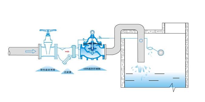 自力式液位調(diào)節(jié)閥又稱浮球控制閥,其工作原理如圖: