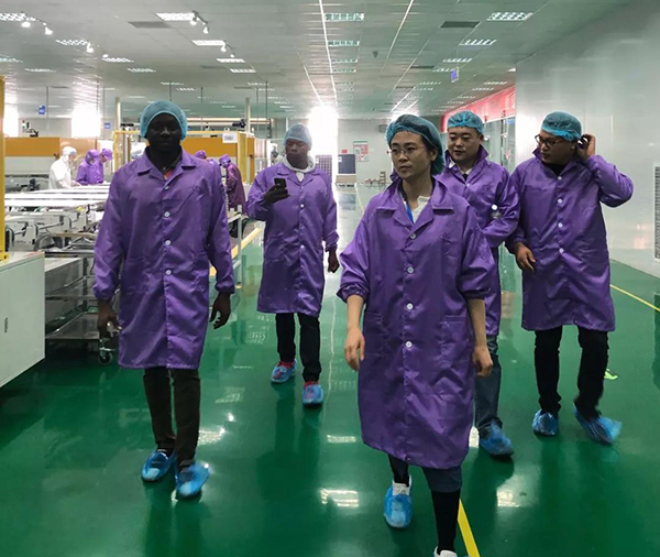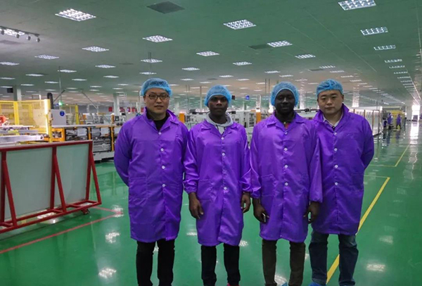 4月25日,我們就迎來了兩位加納的客人,我們這兩位加納客人中文也是非常的溜,還能彪兩句方言呢!在愉悅的氣氛當(dāng)中,我們業(yè)務(wù)部李經(jīng)理,陪同我們遠(yuǎn)道而來的加納的客人,首先參觀了廠區(qū)的展廳,了解了公司的成立、發(fā)展以及未來的發(fā)展方向,觀摩了產(chǎn)品展示區(qū)的組件產(chǎn)品以及微電站。緊接著,又來到了車間,李經(jīng)理系統(tǒng)詳細(xì)的給加納客人介紹了我們的復(fù)合型生產(chǎn)線的特點(diǎn)及優(yōu)勢(shì),加納客人也饒有興致地詢問了很多問題。