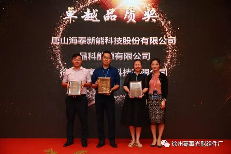 作為國內(nèi)*具規(guī)模的雙玻組件生產(chǎn)基地,嘉寓光能的雙玻組件榮獲組委會頒發(fā)的“卓越品質(zhì)獎”。