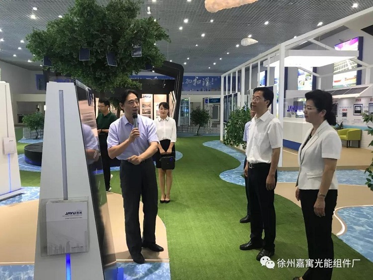 寓光能自籌備建廠以來,一直獲得了政府部門的高度重視與支持。在展廳內(nèi)嘉寓光能總經(jīng)理陳志榮向莊市長一行,介紹了嘉寓光能的基本情況,并且重點(diǎn)介紹了嘉寓光能的特色產(chǎn)品雙玻組件以及輕質(zhì)組件,莊市長還親自搬抬了普通組件及輕質(zhì)組件,感受了輕質(zhì)組件與普通組件在重量上的區(qū)別。