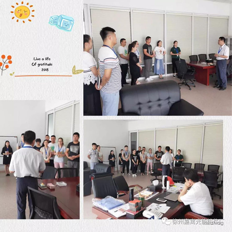在嘉寓集團(tuán)公司例會(huì)上,董事長(zhǎng)田家玉就嘉寓光能科技有限公司的開幕投產(chǎn)暨戰(zhàn)略簽約儀式的舉辦予以了充分的肯定與贊揚(yáng)!正所謂細(xì)節(jié)決定成敗,此次活動(dòng),嘉寓光能的員工做到了細(xì)致入微,獲得了來賓及合作伙伴的熱情贊揚(yáng)!