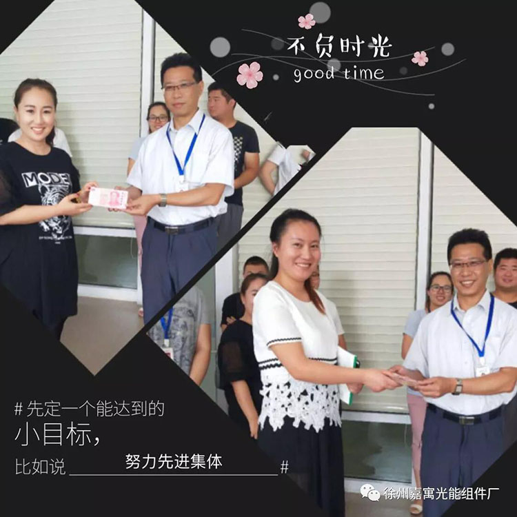7月17日,在嘉寓光能總經(jīng)理陳志榮的辦公室里,陳總再一次對(duì)負(fù)責(zé)此次活動(dòng)的管理部、業(yè)務(wù)部進(jìn)行了表揚(yáng),陳總表示:大家的努力我們有目共睹,大家的團(tuán)結(jié),使得活動(dòng)圓滿成功!在陳總及生產(chǎn)部副總古海東的見證下,公司執(zhí)行副總何植業(yè)為管理部及業(yè)務(wù)部發(fā)放了獎(jiǎng)金,并對(duì)兩個(gè)部門的領(lǐng)導(dǎo)進(jìn)行了了特別表彰。何總的話令人鼓舞,室內(nèi)掌聲熱烈,這掌聲是對(duì)被獎(jiǎng)勵(lì)者贏得榮譽(yù)的肯定,也是對(duì)今后工作的鼓勵(lì)。