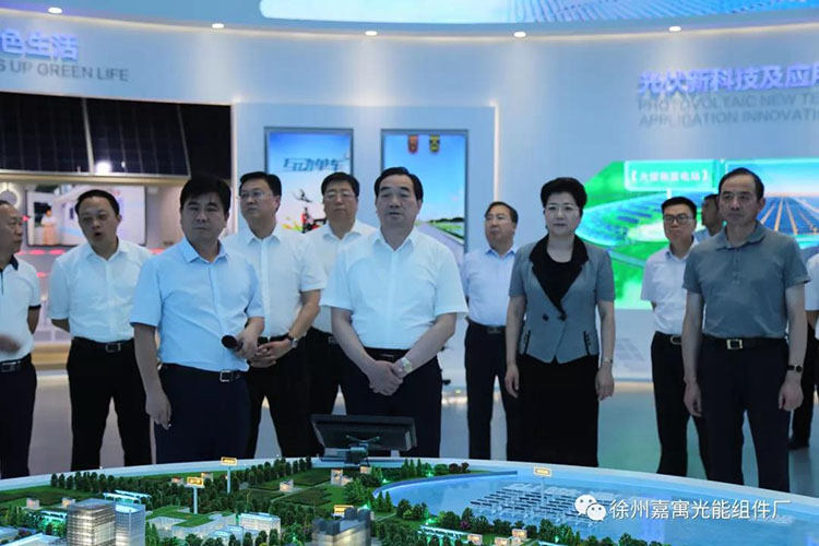 嘉寓光能作為沛縣光伏產(chǎn)業(yè)鏈中的重要一環(huán),政府部門一直給予高度的重視與支持。在展廳內(nèi)嘉寓光能總經(jīng)理陳志榮向周鐵根書記一行,介紹了嘉寓光能的基本情況,重點(diǎn)介紹了嘉寓光能的特色產(chǎn)品雙玻組件以及輕質(zhì)組件。